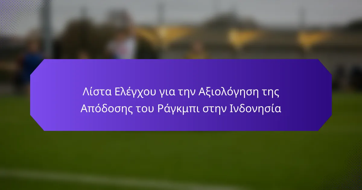 Η αξιολόγηση της απόδοσης του ράγκμπι στην Ινδονησία απαιτεί μια ολοκληρωμένη λίστα ελέγχου που εστιάζει σε βασικούς δείκτες απόδοσης (KPIs) όπως είναι οι στατιστικές αγώνων, οι μετρήσεις παικτών και η δυναμική της ομάδας. Χρησιμοποιώντας προηγμένα εργαλεία και τεχνικές προπονητικής, οι προπονητές μπορούν να αναλύσουν αποτελεσματικά την ατομική και ομαδική απόδοση, προάγοντας ένα περιβάλλον για συνεχή βελτίωση και στρατηγική προσαρμοστικότητα.