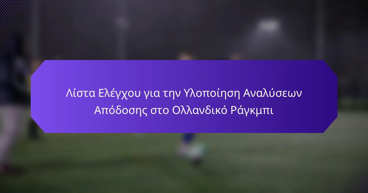 Η εφαρμογή αναλύσεων απόδοσης στο ολλανδικό ράγκμπι μπορεί να ενισχύσει σημαντικά την απόδοση των παικτών και την αποτελεσματικότητα της ομάδας. Αξιολογώντας συστηματικά τις τρέχουσες μεθόδους συλλογής δεδομένων και εστιάζοντας σε βασικούς δείκτες απόδοσης, οι ομάδες μπορούν να αποκτήσουν πολύτιρες πληροφορίες που οδηγούν σε στρατηγικό σχεδιασμό και ενισχύουν τις σχέσεις με τους φιλάθλους.