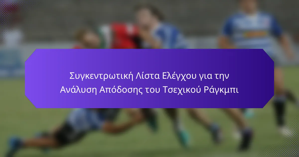 Η ολοκληρωμένη λίστα ελέγχου για την ανάλυση απόδοσης του τσεχικού ράγκμπι επικεντρώνεται σε βασικούς δείκτες όπως οι στατιστικές παικτών, η απόδοση της ομάδας και η στρατηγική παιχνιδιού. Με την συστηματική αξιολόγηση αυτών των στοιχείων μέσω συλλογής δεδομένων και ανάλυσης βίντεο, οι προπονητές μπορούν να εντοπίσουν τα δυνατά και αδύνατα σημεία, καθοδηγώντας τελικά την προπόνηση και τις στρατηγικές προσαρμογές. Η χρήση εξειδικευμένου λογισμικού και φορετής τεχνολογίας ενισχύει περαιτέρω τις πληροφορίες που αποκτώνται, εξασφαλίζοντας ενημερωμένη λήψη αποφάσεων για τη βελτίωση της συνολικής απόδοσης.