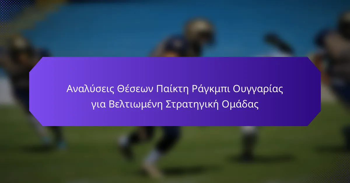 Στο ουγγρικό ράγκμπι, η κατανόηση των θέσεων των παικτών είναι κρίσιμη για την ανάπτυξη μιας αποτελεσματικής στρατηγικής ομάδας. Οι επιθετικοί και οι αμυντικοί έχουν διακριτούς ρόλους που επηρεάζουν τόσο το φυσικό παιχνίδι όσο και τις ευκαιρίες σκοραρίσματος, καθιστώντας απαραίτητη την ανάλυση των συγκεκριμένων δεξιοτήτων και χαρακτηριστικών τους. Εστιάζοντας σε αυτές τις δυναμικές, οι ομάδες μπορούν να βελτιώσουν την απόδοσή τους και να βελτιστοποιήσουν το συνολικό τους σχέδιο παιχνιδιού.