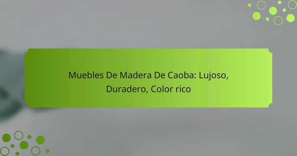Elegir muebles de caoba para su hogar significa optar por piezas que combinan lujo, durabilidad y un color rico. Esta madera es altamente valorada por su resistencia y belleza, lo que la convierte en una excelente inversión para cualquier espacio.
