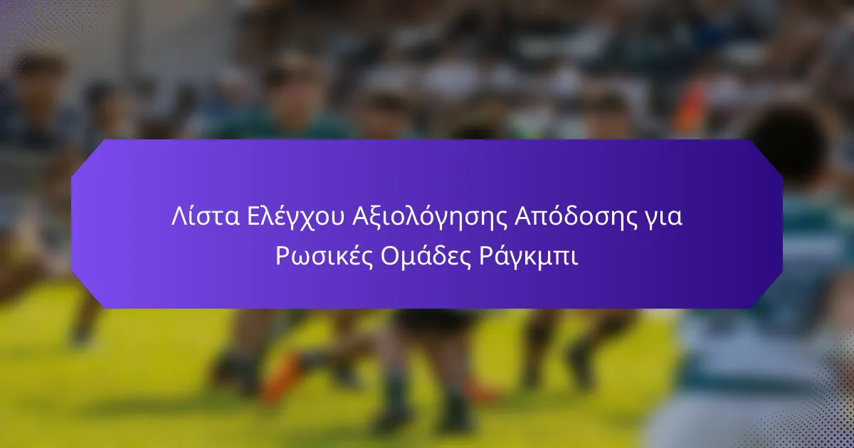 Η λίστα ελέγχου αξιολόγησης απόδοσης για τις ρωσικές ομάδες ράγκμπι είναι απαραίτητη για την εκτίμηση τόσο των ατομικών όσο και των ομαδικών ικανοτήτων. Εστιάζοντας σε βασικούς δείκτες απόδοσης, οι προπονητές μπορούν να εντοπίσουν τα δυνατά και αδύνατα σημεία, επιτρέποντας στοχευμένη εκπαίδευση και στρατηγικό σχεδιασμό. Η ενσωμάτωση εργαλείων όπως η ανάλυση βίντεο και η παρακολούθηση φυσικής κατάστασης ενισχύει περαιτέρω τη διαδικασία αξιολόγησης, οδηγώντας τελικά σε βελτιωμένη απόδοση στο γήπεδο.