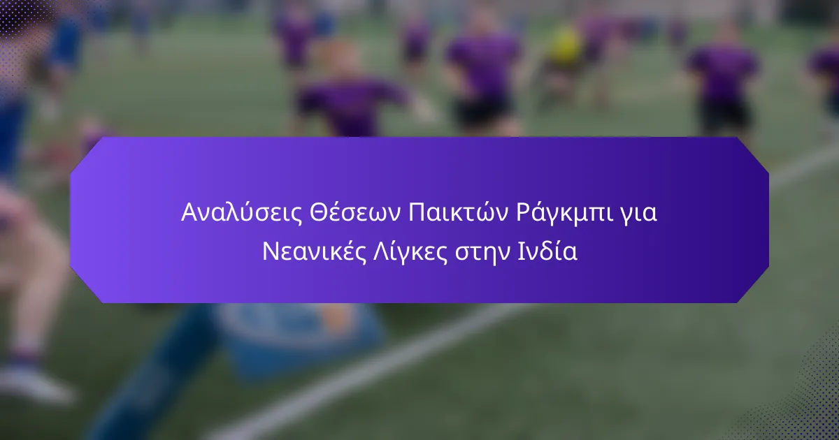 Στις νεανικές ομάδες ράγκμπι, η κατανόηση των θέσεων των παικτών είναι κρίσιμη για την ανάπτυξη δεξιοτήτων και στρατηγικών. Οι forwards και οι backs παίζουν μοναδικούς ρόλους που συμβάλλουν στην επιτυχία της ομάδας, και η ανάλυση μπορεί να βελτιώσει την απόδοση παρέχοντας πολύτιρες πληροφορίες για αυτές τις δυναμικές. Χρησιμοποιώντας εργαλεία που βασίζονται σε δεδομένα, οι προπονητές μπορούν να εντοπίσουν δυνάμεις και αδυναμίες, οδηγώντας σε στοχευμένη εκπαίδευση που προάγει τόσο την ατομική ανάπτυξη όσο και τη συνολική βελτίωση της ομάδας.