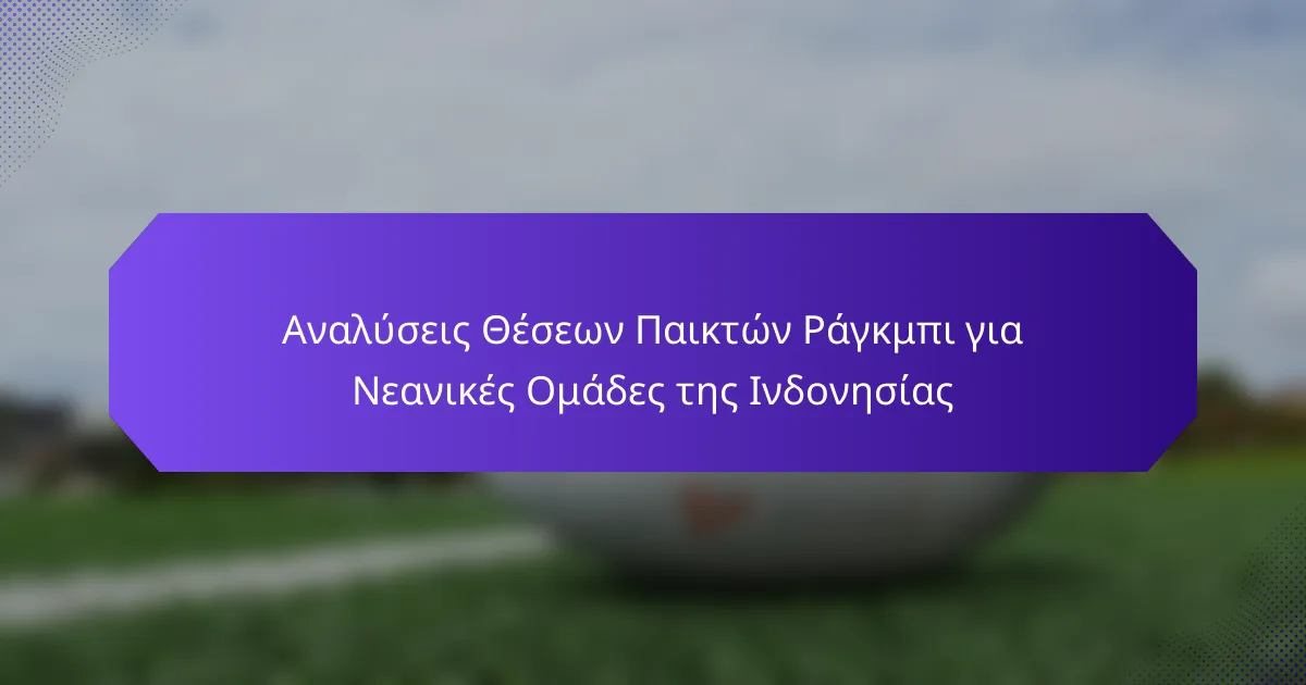 Η ανάλυση θέσεων παικτών ράγκμπι είναι απαραίτητη για τις ομάδες νέων στην Ινδονησία, καθώς βοηθά τους προπονητές και τους παίκτες να κατανοήσουν τους διακριτούς ρόλους των επιθετικών και των αμυντικών. Χρησιμοποιώντας δεδομένα που βασίζονται σε αναλύσεις, οι ομάδες μπορούν να βελτιώσουν τις στρατηγικές εκπαίδευσης και να ενισχύσουν τη συνολική απόδοση, διασφαλίζοντας ότι κάθε παίκτης αναπτύσσει τις δεξιότητές του αποτελεσματικά. Η αξιοποίηση φιλικών προς τον χρήστη εργαλείων ανάλυσης που είναι προσαρμοσμένα για την ανάπτυξη των νέων μπορεί να υποστηρίξει περαιτέρω αυτές τις προσπάθειες, οδηγώντας σε καλύτερη δυναμική ομάδας και προετοιμασία για τους αγώνες.
