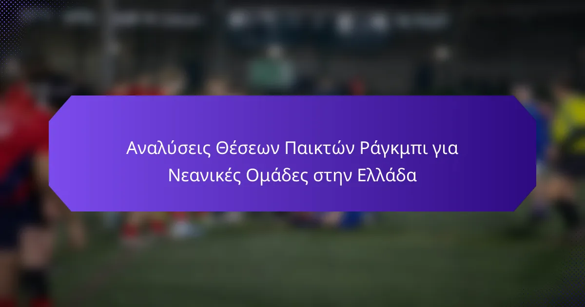 Ποιες είναι οι βασικές θέσεις παικτών στις ομάδες ράγκμπι νέων;
